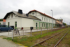 A to "nowy" budynek dworca. Jego piętrowa część powstała w roku 1910, elementy parterowe w dwudziestoleciu międzywojennym a całość podobno także oczekuje na renowację. Ma ona jednak nastąpić dopiero po modernizacji stacji (wymiana torów + przebudowa peronu). |