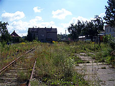 | Wąskotorowy fragment stacji - widok na zachód - dawny wyjazd w kierunku Heřmanic. Po drodze nastepowała jeszcze zmiana czoła pociągu na stacji Dětřichov. Cała ta krótka i niepozorna (pozornie) linia z uwagi na lokalne ukształtowanie terenu była dość mocno pokręcona. Do czasów obecnych pozostało zarośnięte drzewami starotorze - warto się nim przejść. |