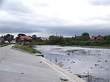 Początkowy fragment przystani rybacko - jachtowej w Nowej Pasłęce. Jest tu nowe, betonowe nabrzeże, ale wypłycenia na podejściu do przystani oraz dość bujna, rzeczna roślinność niecałkiem zachęcają do wpływania tutaj jednostkami o większym zanurzeniu. |