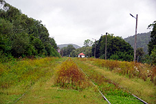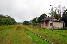 | Ujęcie na południe z (chyba) peronu 3. Pojęcie "perony" jest na tutejszej stacji nieco umowne, ponieważ utwardzony i widoczny jest jeden - ten najbliższy budynku. Pozostałe dwa - ziemne - wtopiły się ze starości w podłoże. To taki bieszczadzki koloryt. |