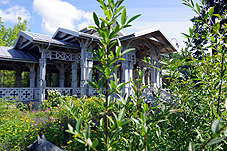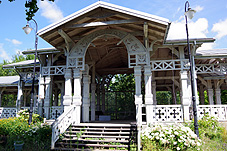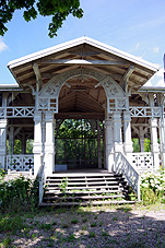 W latach 2014 - 2015 w miejscu dawnego, pochodzącego z lat 70-tych straszydła wybudowano to coś. Drewnianą makietę nawiązującą formą i wyglądem do budynku dworcowego stojącego w tym reprezentacyjnym przecież miejscu Białowieży do czasów I wojny światowej. Ujęcie zza płotu z ulicy Kolejowej. |