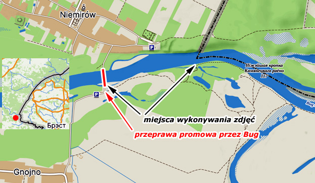 Miejsce przeprawy promowej przez Bug pomiędzy Gnojnem i Niemirowem. Jest to pierwsze miejsce wzdłuż biegu rzeki gdzie można przemieścić się pomiędzy jej brzegami - Bug od kilkuset metrów płynie już całkowicie przez terytorium Polski. Przeprawa uzależnione jest od stanu wody na rzece - niestety latem 2025 roku była nieczynna a prom gdzieś zaginął. Oficjalnym powodem nieprzepływalności Bugu w tym miejscu był bardzo niski poziom wody w rzece oraz łachy piachu, które pojawiły się na trasie promu. |