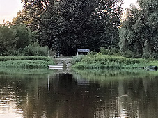 Od miejsca (nie) kursowania promu widać granicę z Białorusią na prawym brzegu rzeki. |