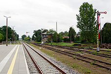 | Ogólne spojrzenie na stację z peronu 2 od strony zachodniej. Ponieważ przeznaczenie budynku dworca (przyznajmy - z korzyścią dla niego samego) jest teraz nieco inne to dla pasażerów pozostają takie dość przewiewne wiaty postawiona na peronach 1 i 2. |